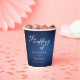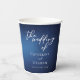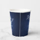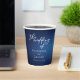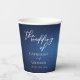 Beautiful deep shades of dark blue create a texture like water on this evening wedding paper cup. Perfect lakeside or waterfront reception decor for a ceremony by the lake with a water view. Elegant white minimalist script with your details on a gradient that feels like you are swimming underwater.