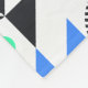 This modern fleece blanket features colourful seamless geometric pattern with lines and shapes in black, blue and green shades on white background.