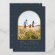 Modern elegant trendy typography Merry Christmas navy blue, black and white real foil gold, silver and rose gold holiday 1 photo card design.