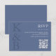 Modern Blue Monogram Minimalist Wedding RSVP Card