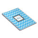 Personalised white and blue chevron pattern spiral notebook with a name in black and monogram in matching blue shade.
