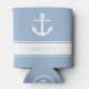 Modern Blue Nautical Anchor Custom Name Can Cooler