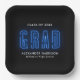 Modern graduation paper plates featuring "Grad" displayed in blue neon lettering with a black background (or color of your choice). Personalize the neon graduation plates with the graduate's name, school name, and graduation year. The personalized graduation paper plates are perfect to use for both high school and college graduation parties!