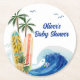 Modern Blue Ocean Wave Surfboard Baby Shower Round Paper Coaster