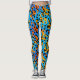 These cool artsy leggings feature a colourful trendy design with a gradient blue, black and orange animal print spots pattern.