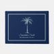Add your own special touch to this simply elegant design featuring your family name or phrase and established date in light pale teal text and palm tree framed in light pale teal border over a navy blue background.