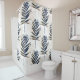 Modern Blue Palm Leaves Gold Strokes White Design Shower Curtain
