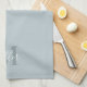 Custom-designed modern blue kitchen hand towel featuring personalised family name monogram in modern hand calligraphy.