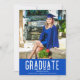 Girly blue photo design graduation announcement and party invitation. Customise with your senior photo, name and the name of their school. Add your graduation party details to the backside of the card and mail out to family and friends to invite them to celebrate the graduate.
