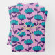 Modern Blue Pink flowers pattern Wrapping Paper Sheet