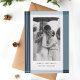 A vertical, one-photo, nontraditional Christmas card featuring a modern design of blue plaid frame with silver foil lines on top. On the back is room to enter your own message. You can also change the colours of the background or add another photo.
