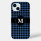 Modern Blue Plaid Pattern Monogram iPhone 15 Case