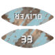 Modern Blue Custom Player Name & Number Keepsake Football. Watercolor background texture in blue and orange colours. Personalise it with your player number and name. The design has a football drawing. A great personalised football keepsake to remember the favourite sport.