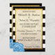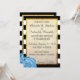 Modern Blue Rose Faux Gold Foil Striped Wedding Invitation