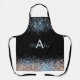 Modern Blue Rose Gold Glitter Name Monogram Black Apron