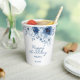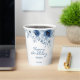 Stunning watercolor blue roses floral arrangement with beautiful greenery birthday paper cup.
