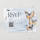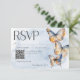 Modern Blue & Rust Watercolor Butterflies QR Code RSVP Card