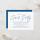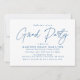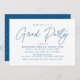Celebrate your milestone with these fun and modern graduation party invitations featuring "Grad Party" in a trendy blue script font. Your graduation party details are displayed below in a clean, easy-to-read layout. The back of the invite showcases a stylish blue and white dotted geometric pattern for a playful touch. Perfect for both high school and college graduates, these simple yet chic graduation invitations set the tone for a memorable celebration.