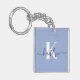 This modern blue keychain with your first name in a trendy script font in navy blue and your first initial in a modern cap font in white is perfect for your keys. It's stylish and trendy and yet very classic.