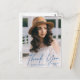 Modern photo graduation thank you postcard featuring the graduate's vertical photo with "thank you" in a handwritten blue calligraphy script overlay. Personalise the front of the graduation thank you postcard by adding the graduate's name and graduation year. The photo thank you postcard reverses to display your return address and custom message.