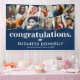 Celebrate success in style with our fully customisable 2025 Graduation Party Banner! Decked out in a stylish blue that can be altered to any colour of your choosing, it immaculately frames a photo collage of the proud graduate. The word 'congratulations', a faux silver foil mortarboard cap, and the graduate's key details are all part of the festive design. It's not just a banner, it's a keepsake that brings memories to life.