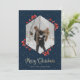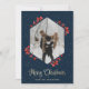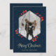 Modern Blue Snow Red Berries Photo Christmas Holiday Card