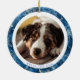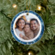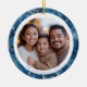 Modern Blue Snowflakes Family Christmas 2 Photos Ceramic Tree Decoration