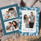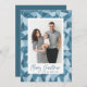 Send holiday greetings to friends and family with these modern Christmas photo cards. The design features your favourite vertical family photo framed in white with a background of frosted watercolor stained glass in shades of light and dark blue. "Merry Christmas" is displayed below in a dark blue, hand-lettered brush script. Personalise the reverse side of the card with two additional photos framed in white against a solid dark blue background. The festive and unique Christmas cards are sure to impress everyone on your Christmas card list this holiday season.