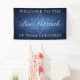 Beautiful deep shades of dark blue create a texture like water on this formal Bar Mitzvah welcome banner. Elegant white minimalist script on a print with your son's name on the subtle Star of David to celebrate your Jewish son's coming of age.