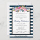 Modern Blue Stripe Floral Wedding Invitation