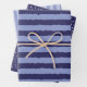 Modern, cute and simple wrapping paper sheets set with dots and distressed stripes pattern in shades of blue.