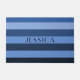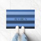 Modern Blue Stripes Pattern Custom Name Doormat
