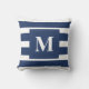 Cute Monogrammed Blue Stripes Pattern Throw Pillow