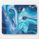 Modern Blue Swirl Agate Iridescent Custom Name Mouse Pad