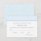 Coordinating RSVP response card with meal selection for the modern blue tile pattern baptism or christening invitation suite for a baby boy. The design features the same baby blue and white geometric tile pattern border with dotted grey trim, with space for guests to select a menu choice and confirm attendance. All text, meal options, and date can be fully personalised to match your event details.