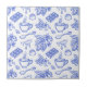 Modern Blue Toile Cacao and Chocolate Pattern Tile