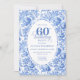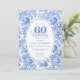 Modern Blue Toile Roses 60th Birthday Invite Digit