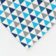 This colourful fleece blanket features a cute geometric pattern with small grey and blue triangles.