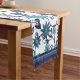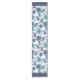 Add a touch of colour and elegance to your home with this modern and pretty table runner. The design features a blue and turquoise floral pattern on a white background.