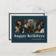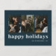 Modern Blue Typography Happy Holidays 3 Photo Holiday Postcard