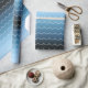 Make your gifts stand out with wrapping paper featuring a stylish modern pattern featuring white curving waves on a blue gradient that goes from light blue to navy blue and back to pale blue.