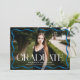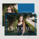 Celebrate your high school or college graduate with this stylish and modern graduation announcement, featuring a full-bleed horizontal photo framed by a sleek blue wavy border. "Graduate" is displayed in bold blue lettering adds a touch of elegance, while the graduate’s name, school, and class year provide a personalised detail. The back includes a vertical photo with space for your custom message, making it the perfect way to share this special achievement with family and friends.