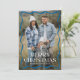 Celebrate the season with this trendy, modern Christmas card featuring your full-bleed vertical photo framed by a stylish blue wavy border. "Merry Christmas" stands out in bold white lettering, with your family's name displayed below. The back showcases two additional horizontal photos on a solid blue background with subtle snow-like dots, adding a festive and personal touch to your holiday greetings. Perfect for sharing memories and spreading cheer!