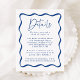 Complete your wedding suite with our Modern Wavy Frame wedding details card. Featuring the same retro design as our invitation collection, this card features a blue wavy frame border surrounding your important wedding details such as wedding venue details, hotel accommodations, directions, and wedding website.