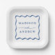 Modern Blue Wavy Frame Wedding Paper Plate