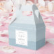 Modern Blue Wedding Favour Box. This beautiful and elegant dusty blue wedding box features a watercolor-painted ombre background with the bride and groom's names, wedding date, and 'thank you'. Find matching items in the Dusty Blue Watercolor Ombre Wedding Collection.