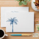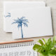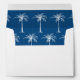 Customise this elegant design featuring modern script typography with your name and return address on the back flap. An artistic blue palm tree adorns the front while the inside of the envelope features a white palm tree pattern over a blue background. If you need help or matching items, please contact me.