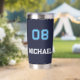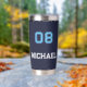 Modern Blue White Player Name Jersey Number Sports Insulated Tumbler