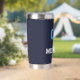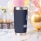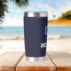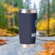 Create your own custom, personalised, cool, chic, trendy, classy, modern, stylish light blue and white typography / font / script, 20 oz, double walled insulation for temperature retention, durable, dark navy blue, premium-grade stainless steel monogrammed player name jersey number thermal tumbler that keeps your warm beverages warm and your cool beverages cool, all while keeping your hands comfortable. Simply type in your name / kids name / player name and player jersey number, to customise. Perfect for your favourite hot & cold beverages, health drinks, shakes, tea, coffee, soup etc and for sports field, hiking, camping, trekking, school, college, home, office, hitting the gym, attending a business meeting, or enjoying a picnic in the park, pool or beach in the summer, around the fire, or on the mountain in the winter. Makes a great gift for wedding, birthday, graduation, fathers day, mothers day, christmas, holidays, marriage anniversary, valentines day, back to school, and more, for your loved ones, kids, girlfriend, boyfriend, mum, dad, son, daughter, brother, sister, husband, wife, grandparents, teams, club, teammates, athletes, player, coach, sportsmen, friends and family.
