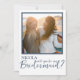 This is a modern and elegant "Will You Be My Bridesmaid" proposal card template. The design features a single photo with a blue outline and typography. There is space on the back of this card for a special message, or you could delete and add a hand written note.